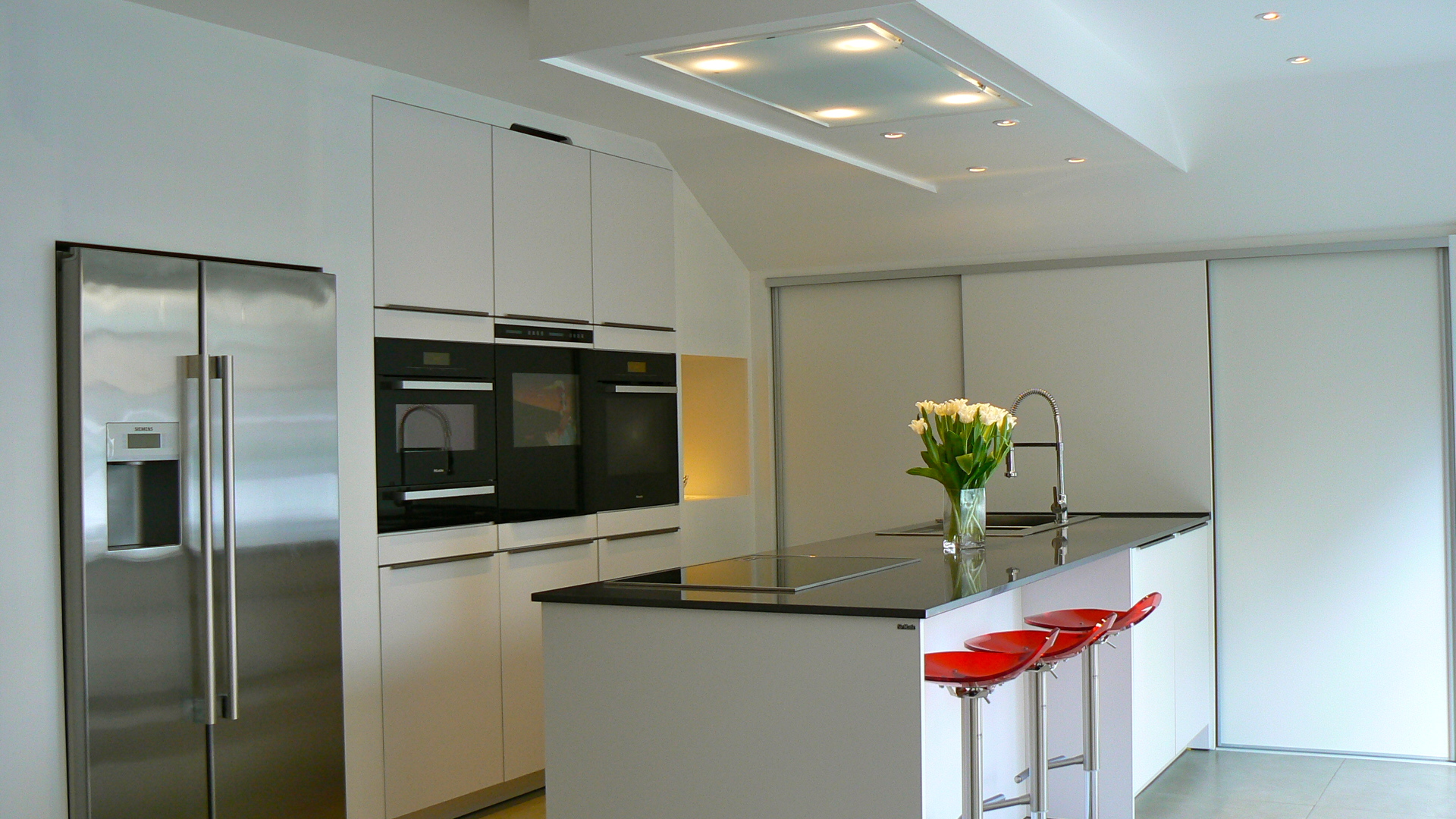 Four + Chauffe-plats + Taque à induction + Hotte en Corian suspendue